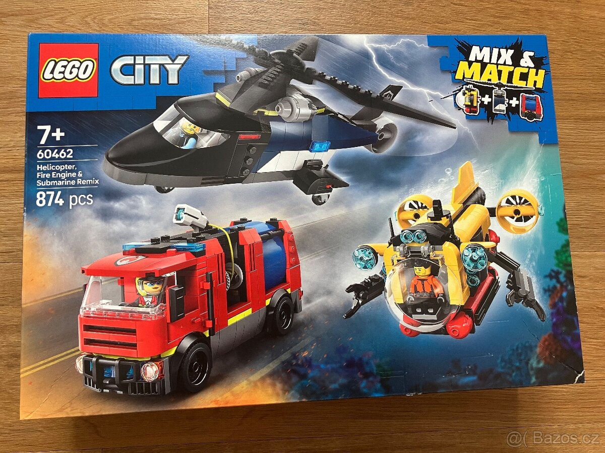 Prodám nové, nerozbalené kombinační Lego city Remix-mix and match-3 v 1: helikoptéra, hasiči a ponorka.