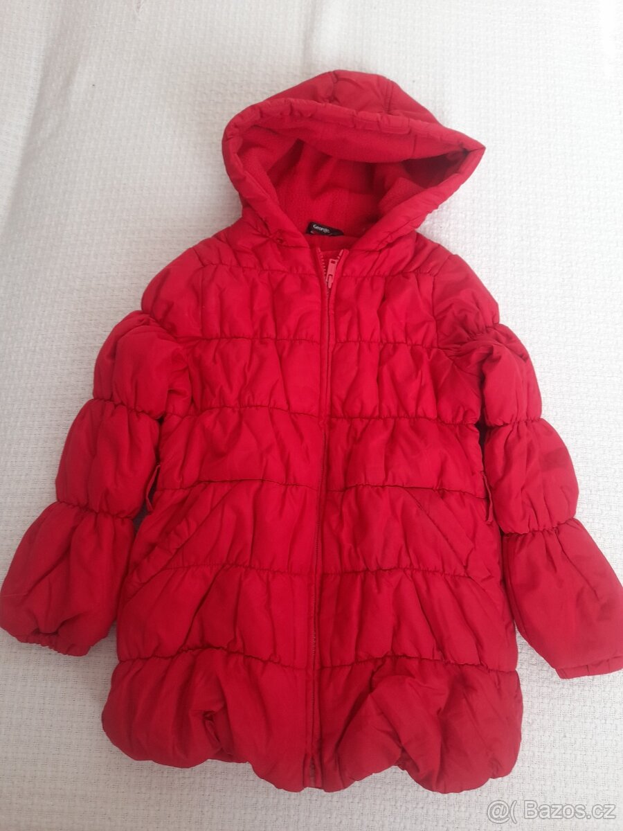 Prodám červenou dívčí zimní bundu zn. George vel. 110-116. Je nošená, již bez pásku, na vnitřním fleecu je trošku znát praní, není tolik plyšový. Ale jinak je bunda bez vad.