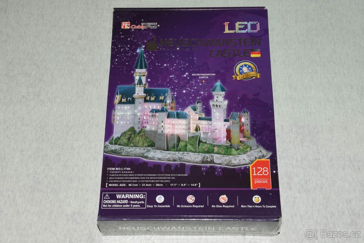 Prodám nové, zabalené 3D Puzzle CubicFun svítící Zámek Neuschwanstein 128 dílků.