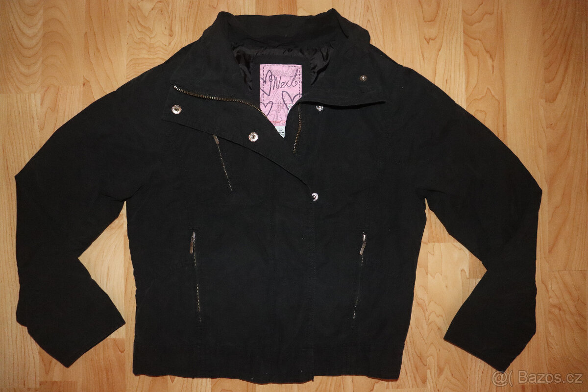 Nabízím černou lehkou bundu zn. Next, made in Srí Lanka, vel. 152 (na 10-12 let), na zip a druky, délka 51cm, šířka 2x45cm, 70% bavlna, 30% nylon, velmi hezká, měkkoučká látka, dobrý stav, cena jen 270Kč.