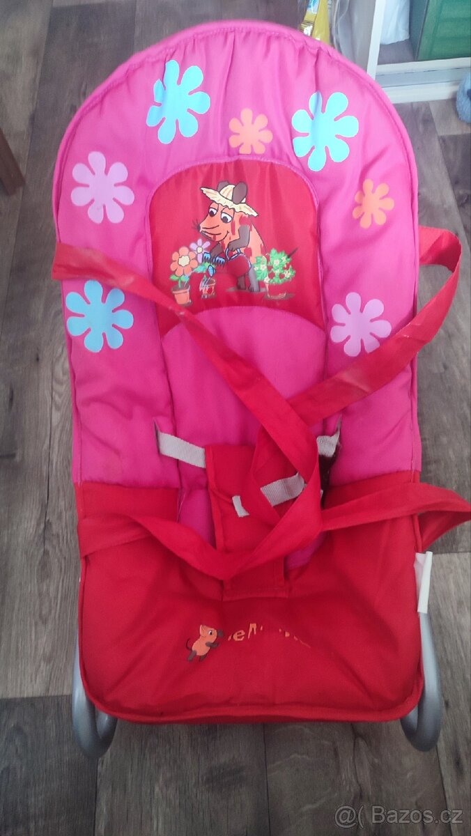 Lehátko/houpatko - [15.2. 2026]Prodám lehátko pro děti. Funkční. Látka na zadní straně potrhaná, ale dala by se opravit.