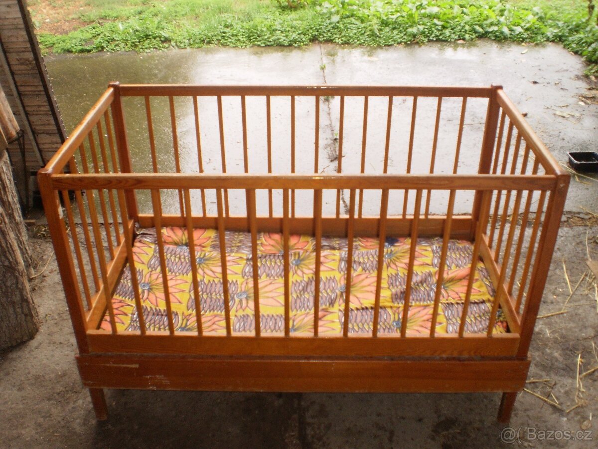 Prodám dřevěnou postýlku z masivu, pro děti do 5ti let, rozměry 123x65 cm, výška 58 cm od země.