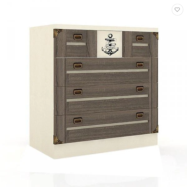 Komoda se skládá ze třech velkých a dvou malých zásuvek na uložení oblečení.