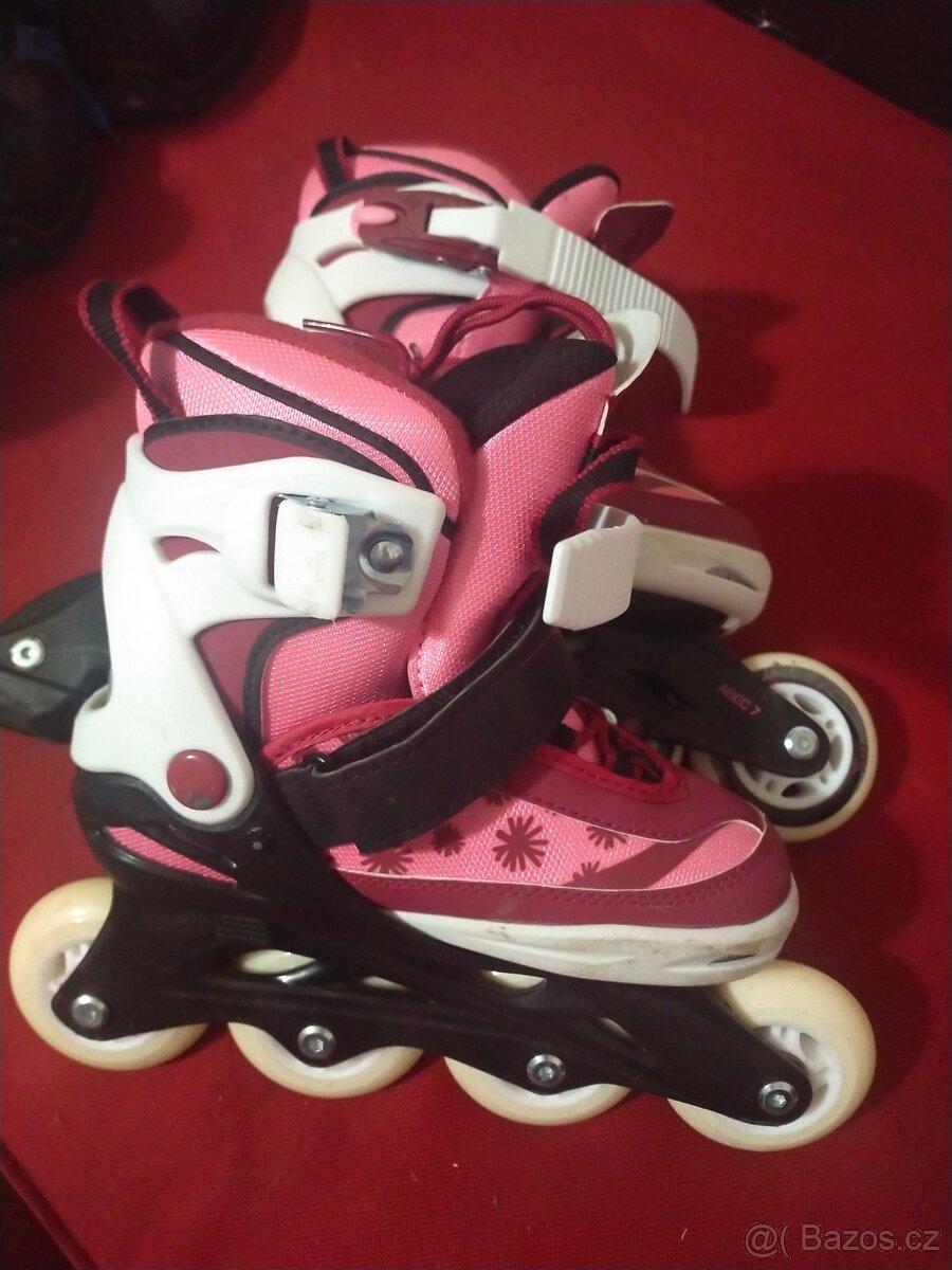 Téměř nepoužívane, dívčí brusle. Nastavitelná velikost.