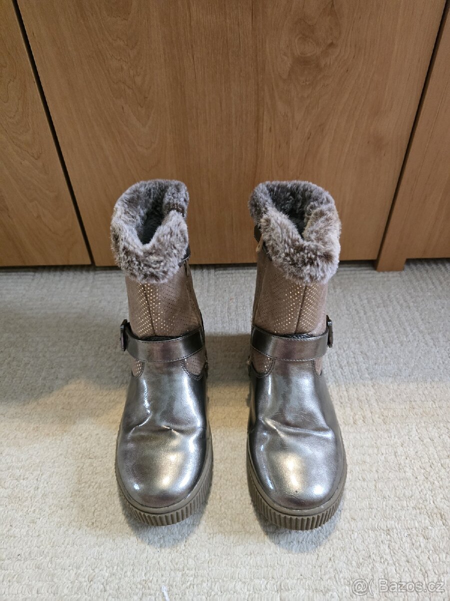 Prodám dívčí zimní boty s kožíškem, Baťa. Standardní opotřebení v ohybech nártu. Původní cena 1.000, -