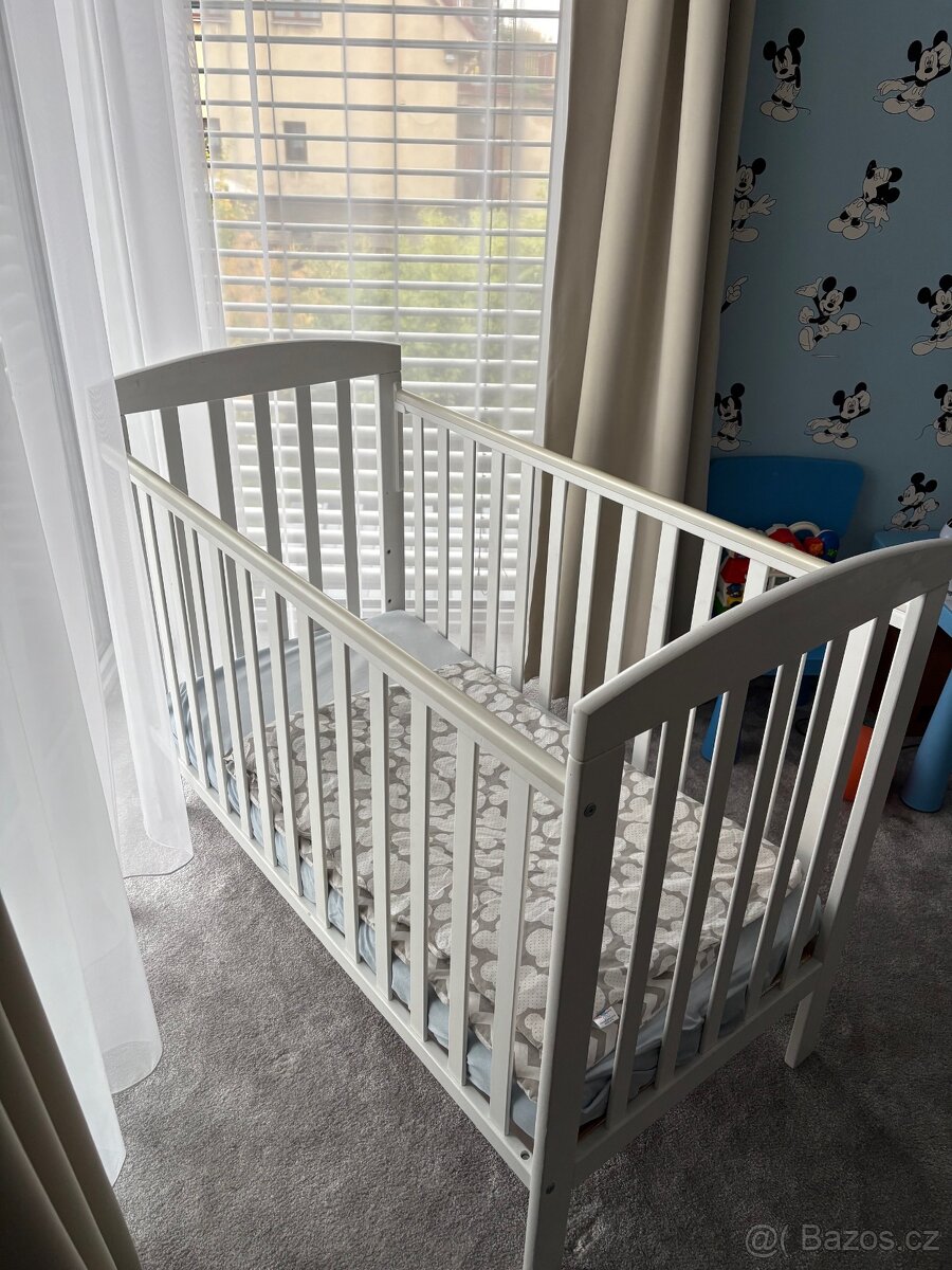 Prodam bilou drevenou detskou postylku pro miminko, vc kokosove matrace vhodne pro novorozence. Dale rada venuji perinku pro miminka spolu s povlecenim, 5ks prosteradla, 2 ks folie proti vlkosti. Mam pripadne i bocnice pro novorozence ve svetle modre barve.