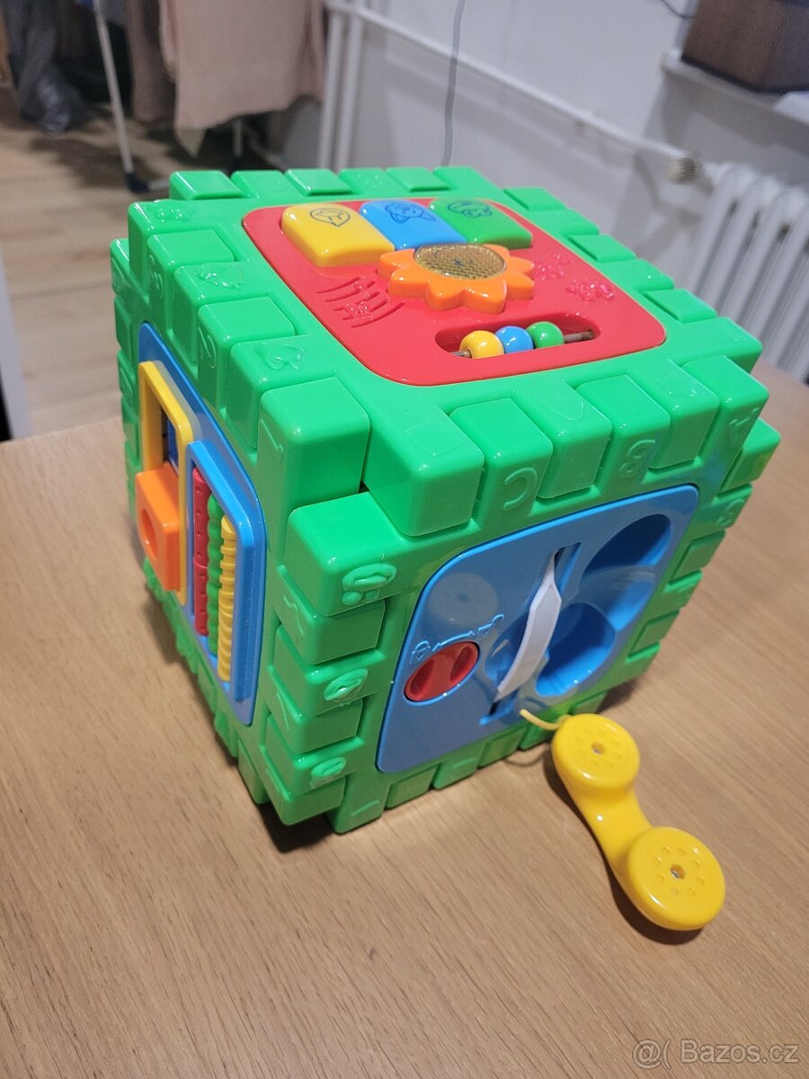 Hraci kostka pro miminko viz foto, rozlozitelne, rozměry 20x20 cm 1 strana kostky, vydává zvuky na 3 baterky viz foto, nutné doplnit nové, zohledněno v ceně, zaslat možné kýmkoliv na výdejní misto Balikovnou, dále Zasilkovnou nebo PPL.