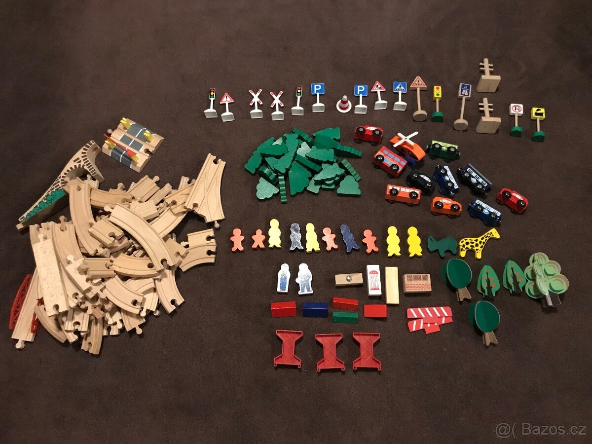 Prodám zánovní dřevěné koleje+příslušenství viz.foto. Lokomotivy na baterii. Cena 2.599 Kč. Možno vyzvednout Praha 6 nebo 8