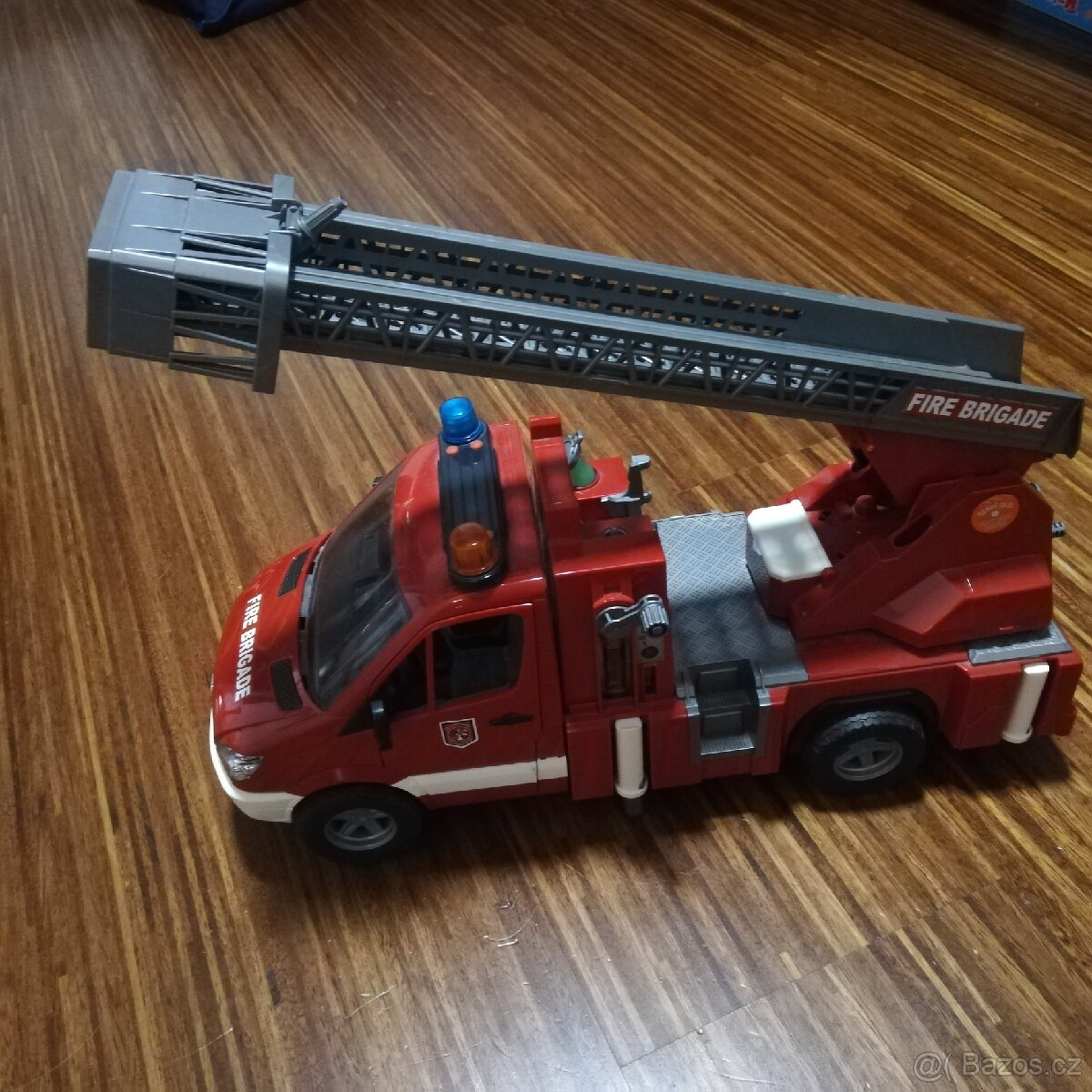 Prodám hasičské auto Bruder, kvalitní plast, délka cca 45 cm, drobné závady, ulomená kotvící packa, chybí hadice, buben na hadici, jinak funkční, zachovalé vč houkačky.