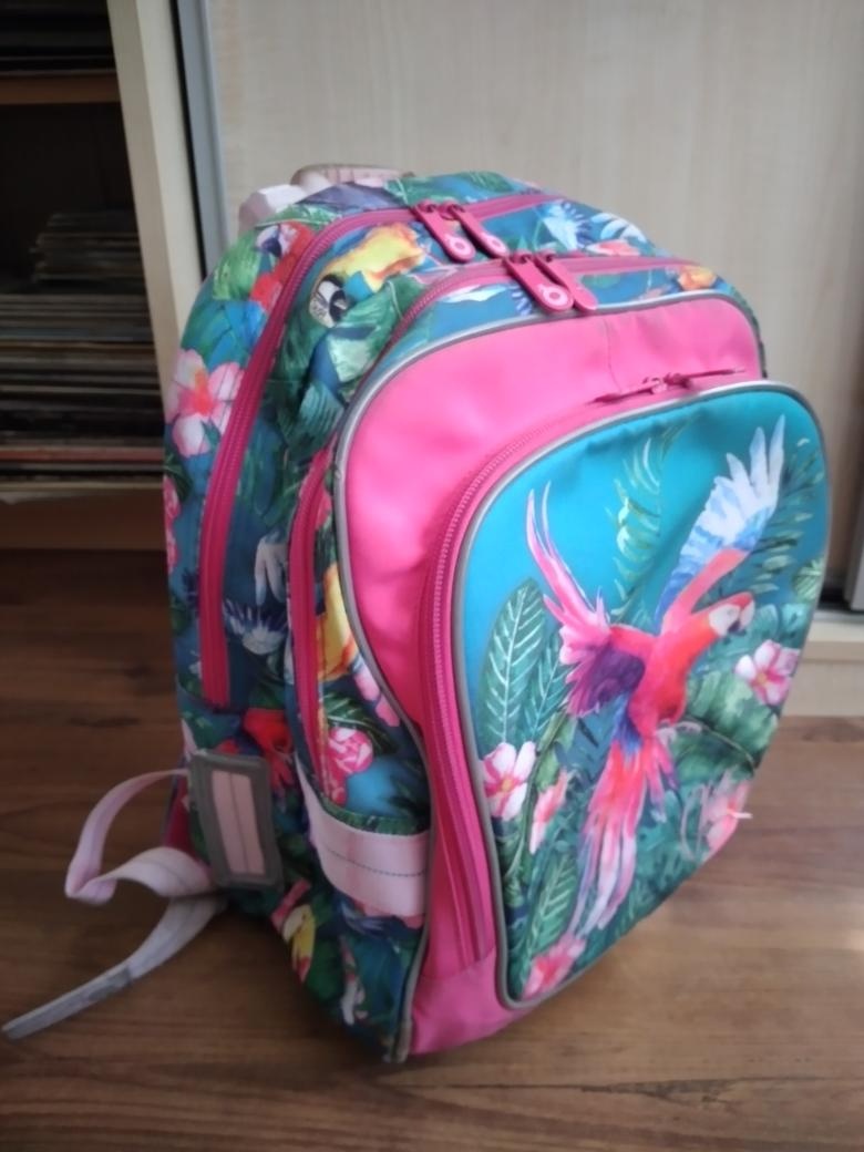 Dívčí školní batoh, nošený 1.-3.třída, dobrý stav. Objemný dvoukomorový batoh. Záda batohu jsou polstrovaná, anatomicky tvarovaná a pevná díky lehké hliníkové výztuze.