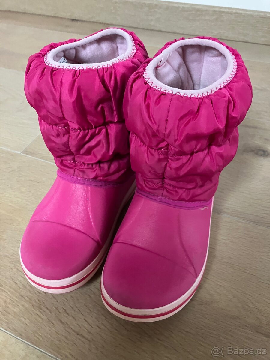 Prodám tyto jednu sezonu nošené dívčí Sněhule Winter Puff značky Crocs. Vodeodolné a lehoučké. Velikost 11 (tzn. 28-29)