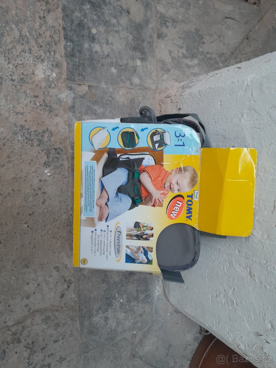 Prodám přídavné sedátko pro děti na židli. Zvýší sed a je k němu možné dítě připoutat. Cestovní dětská židlička.
