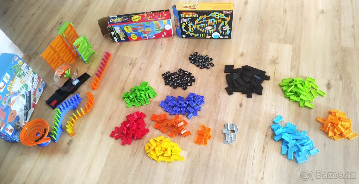 Prodám tři krabice různého padajícího barevného domina (takové, které není určené na hru, ale na stavění cestiček a pak je záměrně shozeno). Krabice nejsou v nejlepším stavu, ale domino je v pořádku a kompletní. Jde o: