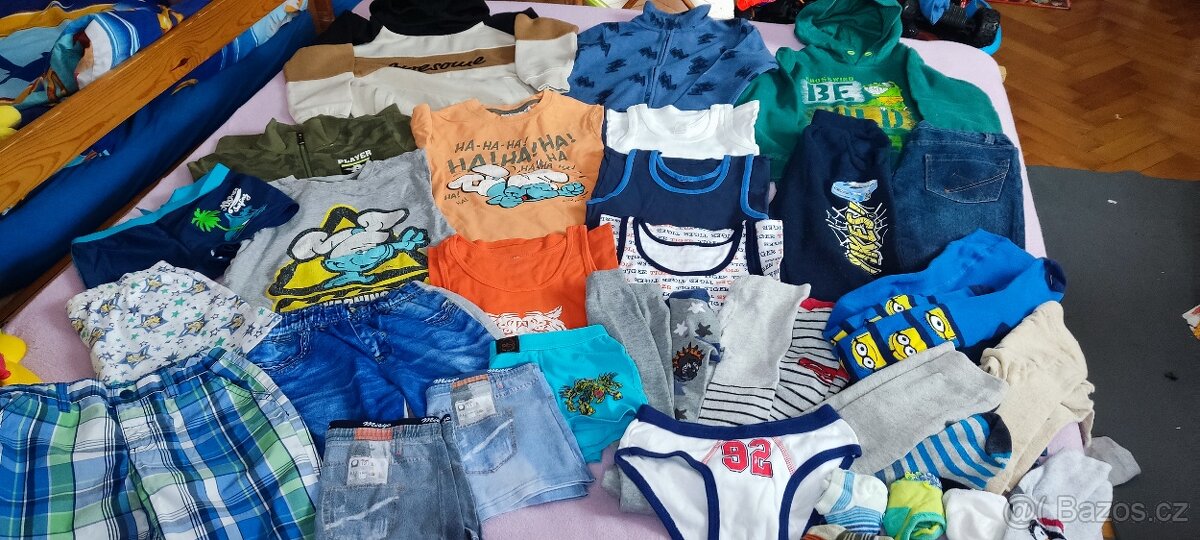 Prodám oblečení po synovi vel. 122/128, cena za vše. Úklid skříně, obsahuje 4 mikiny, tepláky, džíny, 3x kraťasy, trička, 5x punčochy (z toho 1x termo punčochy), plavky, trenky, ponožky. Některé oblečení je jako nové, některé oprané.