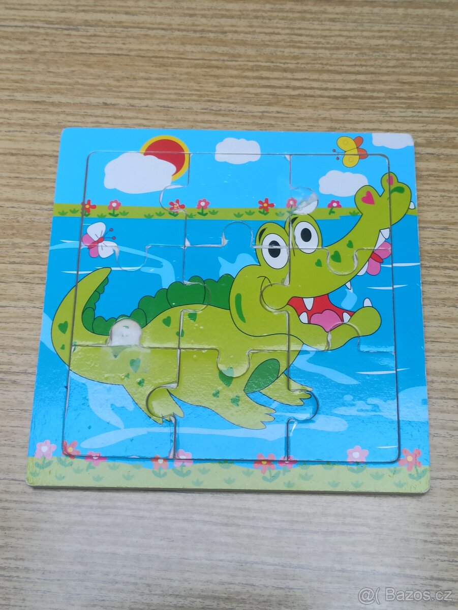 Dřevěné puzzle krokodýl, již odřené viz. foto. Zdarma k objednávce z mé nabídky.