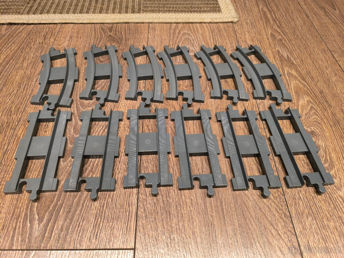 Prodám Lego Duplo koleje. Barva tmavě šedá. 6 KS zatáček a 6 KS rovných.