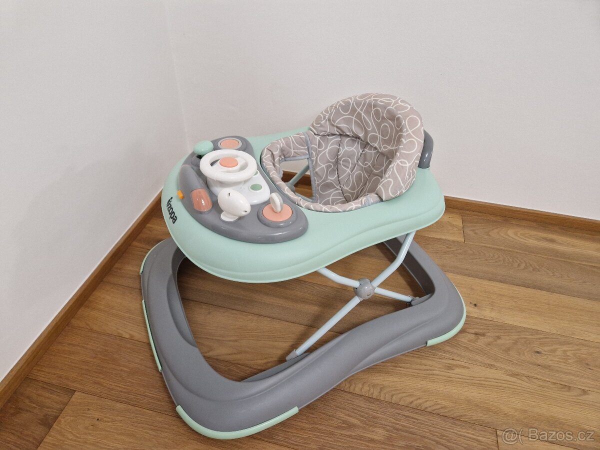 Prodám zábavné chodítko Zopa, top stav, bez vad. Vhodné od 6 měsíců, výšku sedátka lze nastavit do 3 poloh. Má odnímatelný interaktivní panel s melodiemi, se zvuky auta a se světýlky. Po odejmutí panelu lze použít jako papací pultík. Mohu osobně předat v okolí Nymburka, v Praze nebo v Praze východ.
