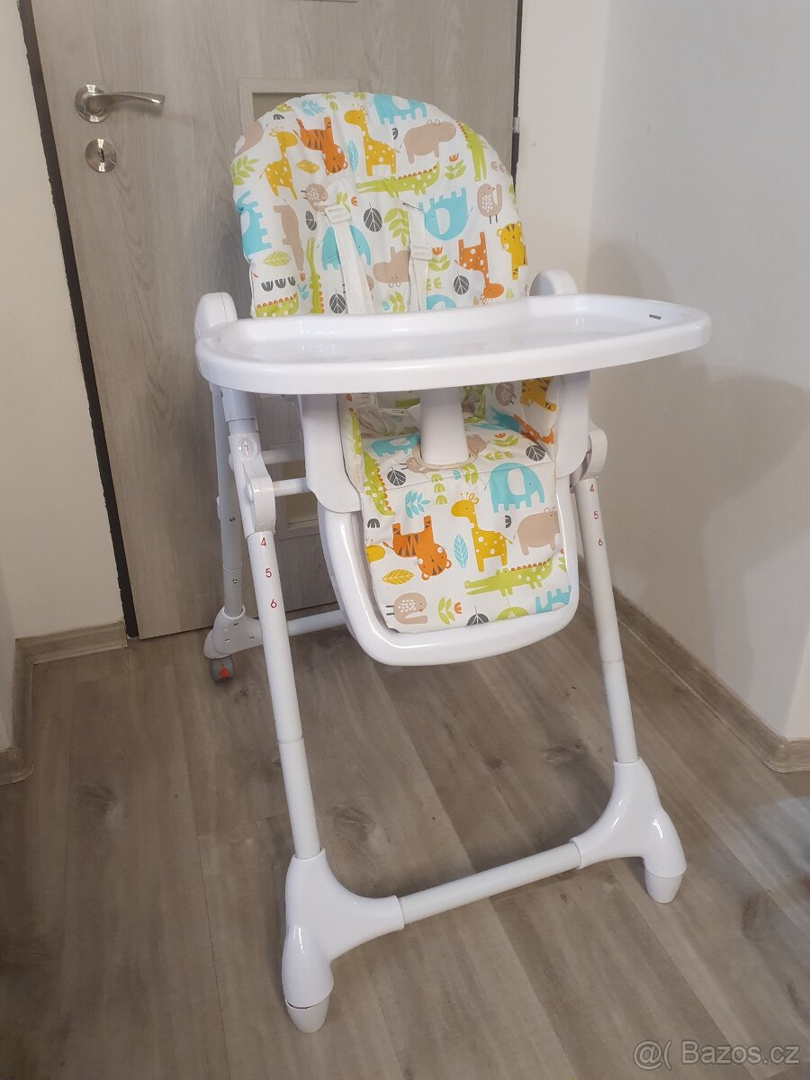 Jidelni zidlicka Petit&Mars. 6-36 mesicu. Vyskove nastavitelna,polohovatelne zada,5ti bodovy bezpecnostni pas. Potah ma nedostatky viz foto. Muze jeste poslouzit na chatu nebo k babicce :)