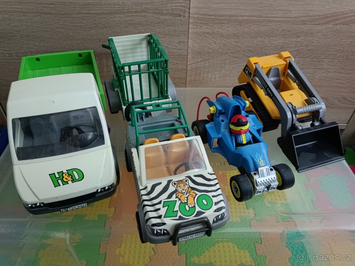 Playmobil transportér 4322, zoo jeep s přívěsem 4855, bagr, formule 4181