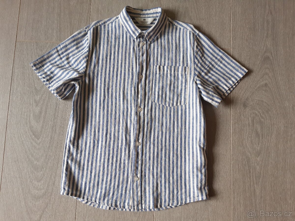 Slabá košile bílá se světle modrým proužkem. Jako nová – syn měl pouze 2x na focení.