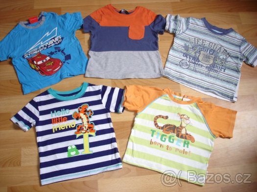 tričko vel.86/92. tričko vel.86/92 JAKO NOVÉ. Tričko s medvídkem Pú nové, bez dírek, bez flíčků za 75Kč, modré pruhy. Tričko vel.86/92 zn. Disney - George s tygříkem z Medvídka Pú. Moc krásné, vzadu zapínání na 3 cvoky, bez poškození, bohužel ale vzadu světlé flíčky na zádech, kterých si běžně nevšimnete za 49Kč. Tričko ( vpravo nahoře) vel.2-3 roky jako nové, málo nošené, bez dírek, bez flíčků za 59Kč, tričko vel.86/92 cars JAKO NOVÉ, bez dírek, bez flíčků, obrázek v pořádku. Moc hezké, barvička krásná, nesepraná za 85Kč. Tričko s krátkým rukávem s pruhy zn. George, vel.86/92, myslím, že jen vyprané z obchodu, bez poškození za 49Kč. Možnost osobního převzetí Praha 4, 5, Mukařov, okolí Říčan, ev. poštou. Mrkněte i na mé další nabídky, ušetříte na poštovném.
