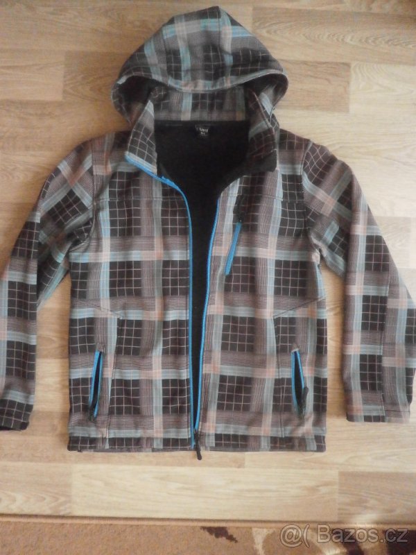 Bunda s flaušem, vel 164, dél. 63 cm, šíř. 50, dél. rukávu 59 cm. , Na předním dílé čára od propisky