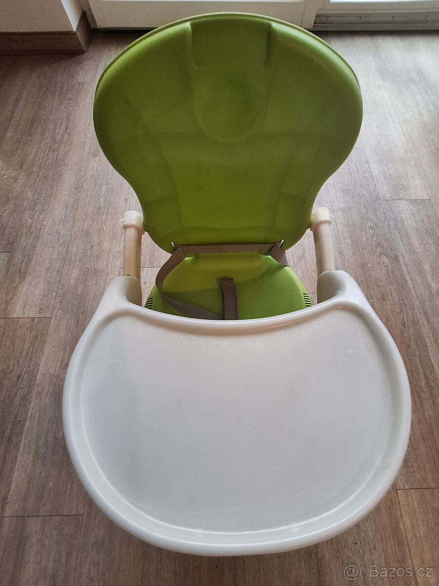 Prodám sedák Cam Smarty, plastový, zelený, s odnímatelným pultíkem, s možností zvýšení, má kšíry pro dítě a další dvoje kšíry pro připevnění sedáku k opěradlu a sedadlu židle. Snadná manipulace. Jednu gumovou podložku na noze okousalo naše psí mimino - viz foto, na funkci to nemá vliv, jen se musí hlídat, aby se neponičila židle. Pouze osobní odběr.
