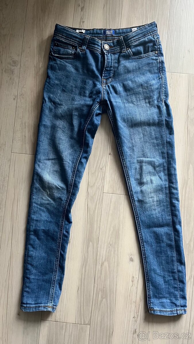 Rifle značky Jack&Jones, uvedená velikost 146, v pase redukce. Šířka 34cm, délka 89cm, délka vnitřní nohavice 68cm.