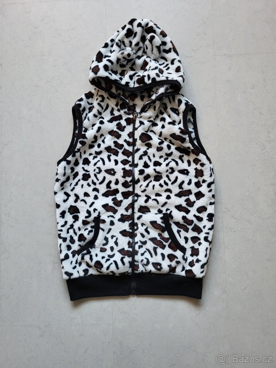 Prodám hezkou heboučkou vestičku pro holčičku cca 12-14 let a zn. Four season. Vestička je na zip a na kapuci má ouška. Je dlouhá 56 cm a v předu má dvě kapsy.