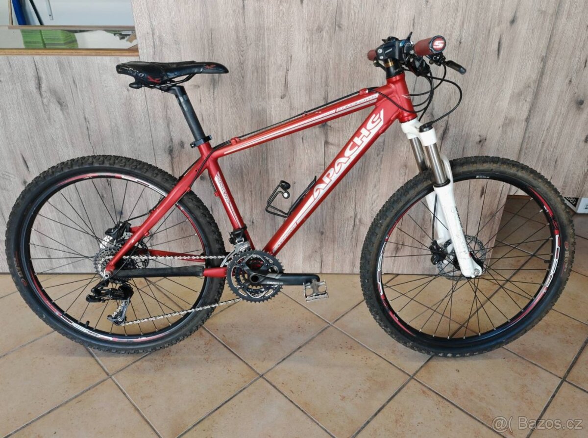Prodám dětské horské kolo Apache Tomahawk Disc, rám 17", kola 26", převody 3x9, Sram X5, hydraulické brzdy, uzamykatelná odpružená vidlice, velmi dobrý stav.