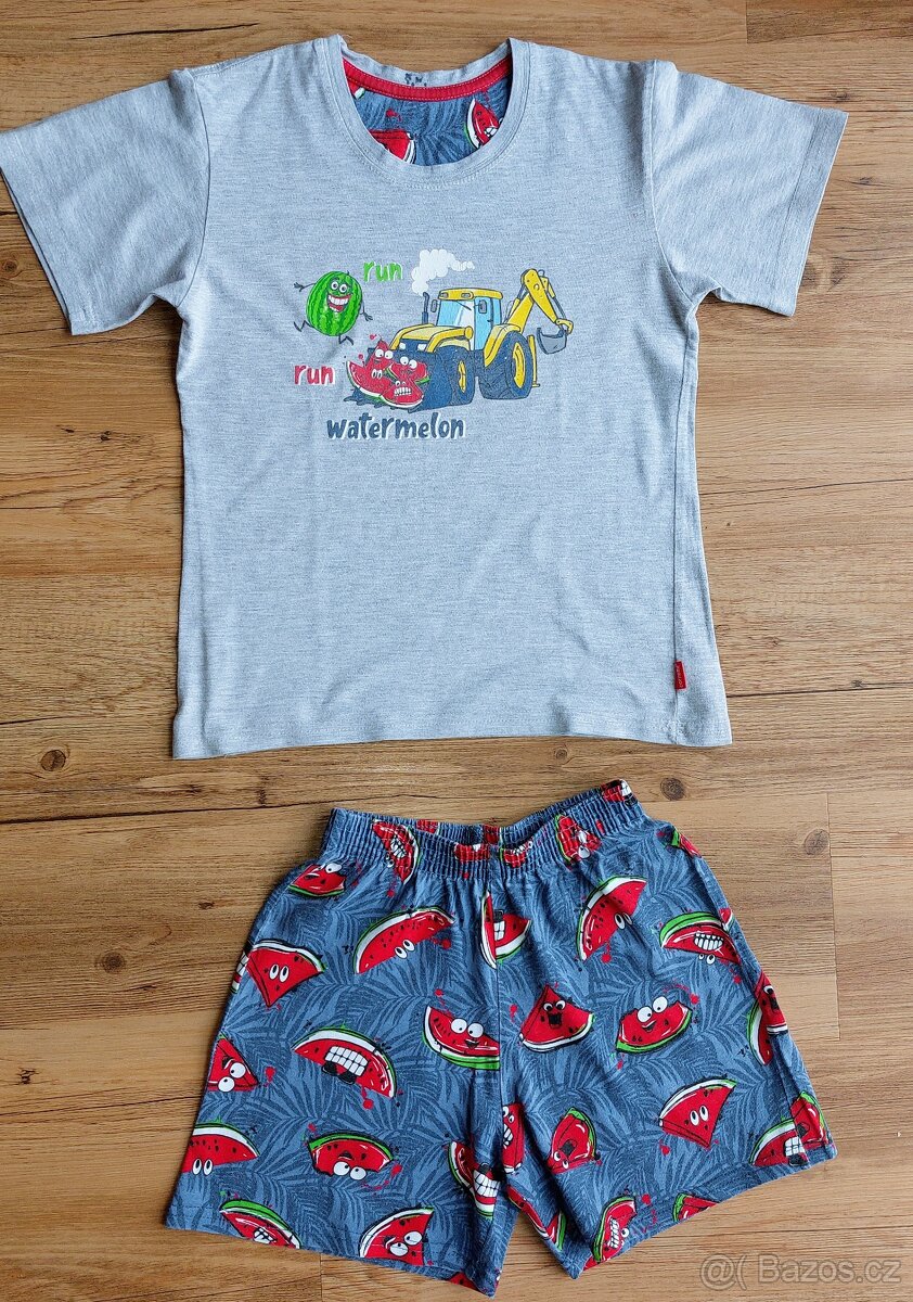 Chlapecké pyžamo vel.134/140 - [15.2. 2026]Hezký stav.Zašitá malá dírka na rukávu,viz foto.Míry na fotkách.