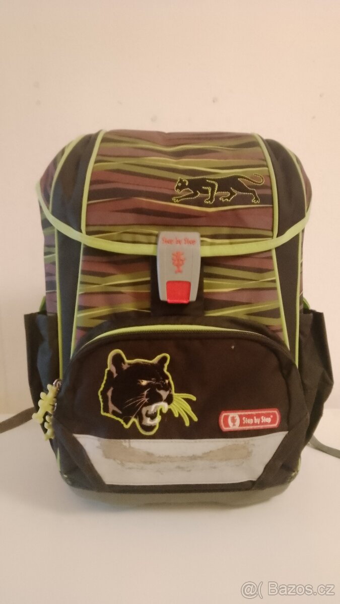 Prodám školní aktovku Step by Step s motivem pantera. Aktovka je velmi lehká, jednoduché zapínání na magnet, popruhy lze dotahovat nahoře i dole, reflexní prvky, termicky izolovaná kapsa na svačinu, vnitřní přihrádka na učebnice, okénko na rozvrh. Vhodná pro 1. - 3. třídu. Odřená reflexní páska na svačinové kapse, jinak krásný stav.