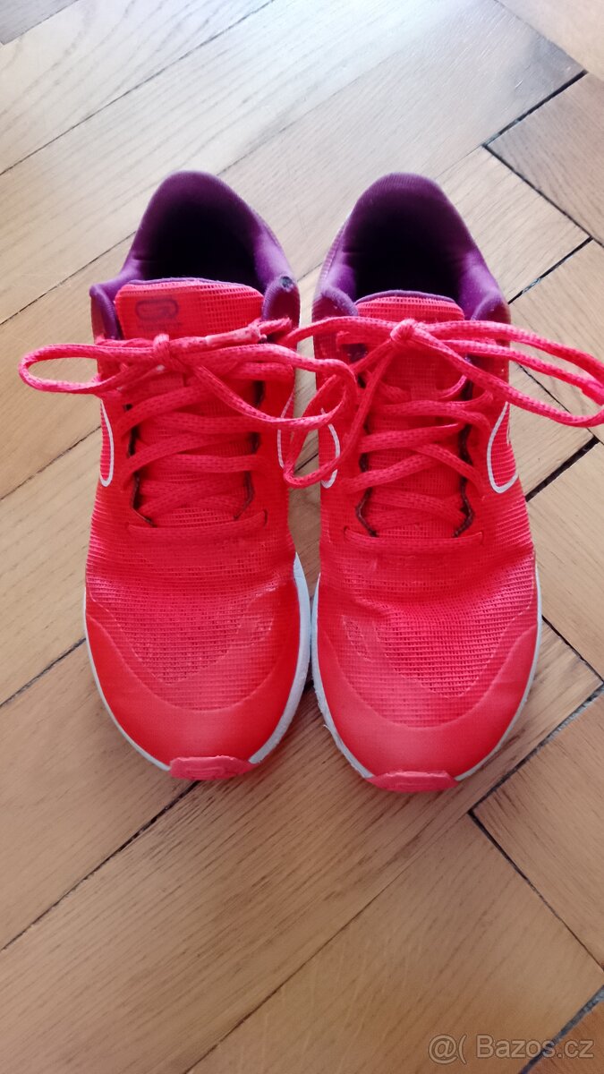 Prodám oranžové tenisky na běhání, atletiku. My nosili jako sálovky. Jsou lehoučké, stélka 22,3 cm. Hezký stav, kosmetická vada - odřený lem.