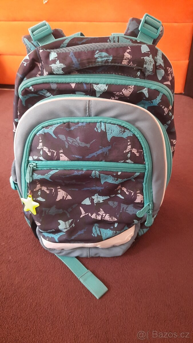 Prodám kvalitní, zachovalý tříkomorový školní batoh Junior Shark s motivem žraloků. Je vhodný od 1. - 4. třídy ZŠ. Výškově nastavitelný systém zad se čtyřmi stupněmi zajistí optimální usazení batohu na zádech podle výšky dítěte. Batoh má tři hlavní komory a jednu kapsu na drobnosti. Hlavní komora batohu obsahuje oddělenou kapsu pro uložení desek na sešity. Prostřední komora má malou kapsičku na zip a přední komora síťovaný organizér uzavíratelný zipem. Boční síťované kapsy jsou určeny k přenášení láhve na pití a jsou zakončeny suchým zipem. Systém Air Flow a prodyšné polstrování umožní dobrou cirkulaci vzduchu a příjemné nošení. Polstrované nastavitelné ramenní popruhy doplňují přídavné dotahovací pásky a hrudní popruh pro zvýšení komfortu při nošení. Batoh je doplněn ze všech stran o reflexní prvky pro zvýšení bezpečnosti. Je vyroben z pevného voděodolného materiálu. Rozměry: 41 x 30 x 20 cm Hmotnost: 0,9 kg Nosnost: 7 kg Objem: 20 l Výrobce: Stil