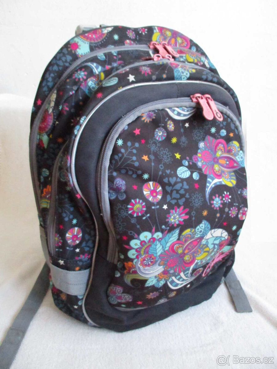 Nabízím dívčí školní batoh zn. Topgal, vhodný pro první stupeň. Podkladová barva tmavošedá. Menší vady viz fotky (odřené rohy, praská rukojeť, suchý zip u vnitřní kapsy uvolněný a roztřepený). Hrudní popruh (lze nasadit nebo sundat), hliníková kostra pro pevnější záda (nepoužívali jsme). 3 hlavní kapsy, dvě malé vnitřní kapsy, uvnitř karabinka na klíče, boční kapsa, reflexní prvky. Hmotnost necelý 1 kg. Na přání pošlu více fotek. K dispozici mám i penál, složky na sešity, vaky na přezůvky a TV - levně nebo zdarma. Komunikace emailem prosím.