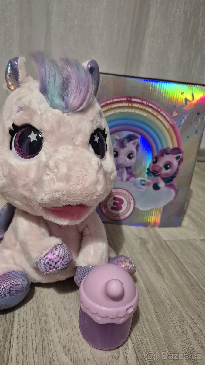 Baby Unicorn je jediný interaktivní plyšový Pony, který se promění v kouzelného jednorožce!Hlazením a krmením duhovým mlékem se bude něco odehrávat. Jeho roh magicky poroste a bude vydávat zvuky víly!PC 1100. Plně funkční, jako nový, včetně krabice. Na 3 tužkové baterie, nejsou soucasti.