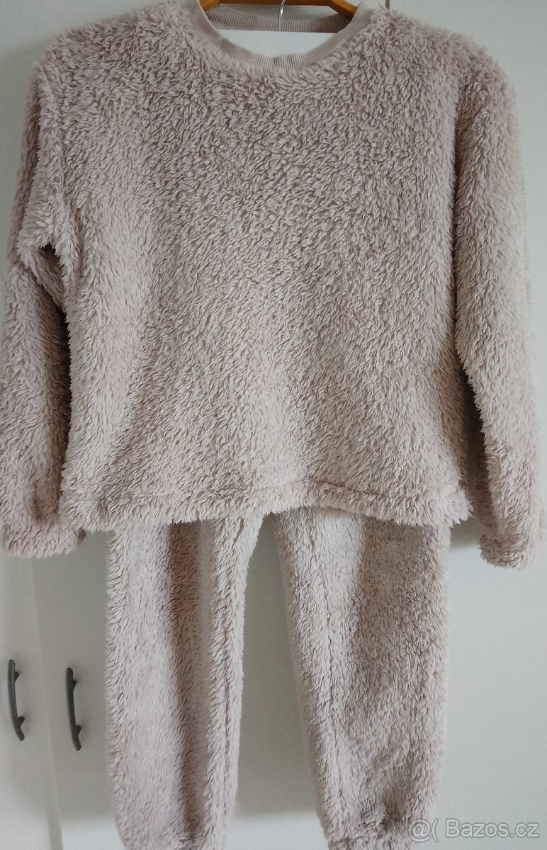 Délka vrcního dílu 50 cm., šířka 47 cm., délka rukávu od ramene 47 cm., délka rukávu pod průramky 38 cm., délka spodního dílu 86 cm., délka od rozkroku 61 cm., v pase 2x 29 cm. Cena 150 Kč.