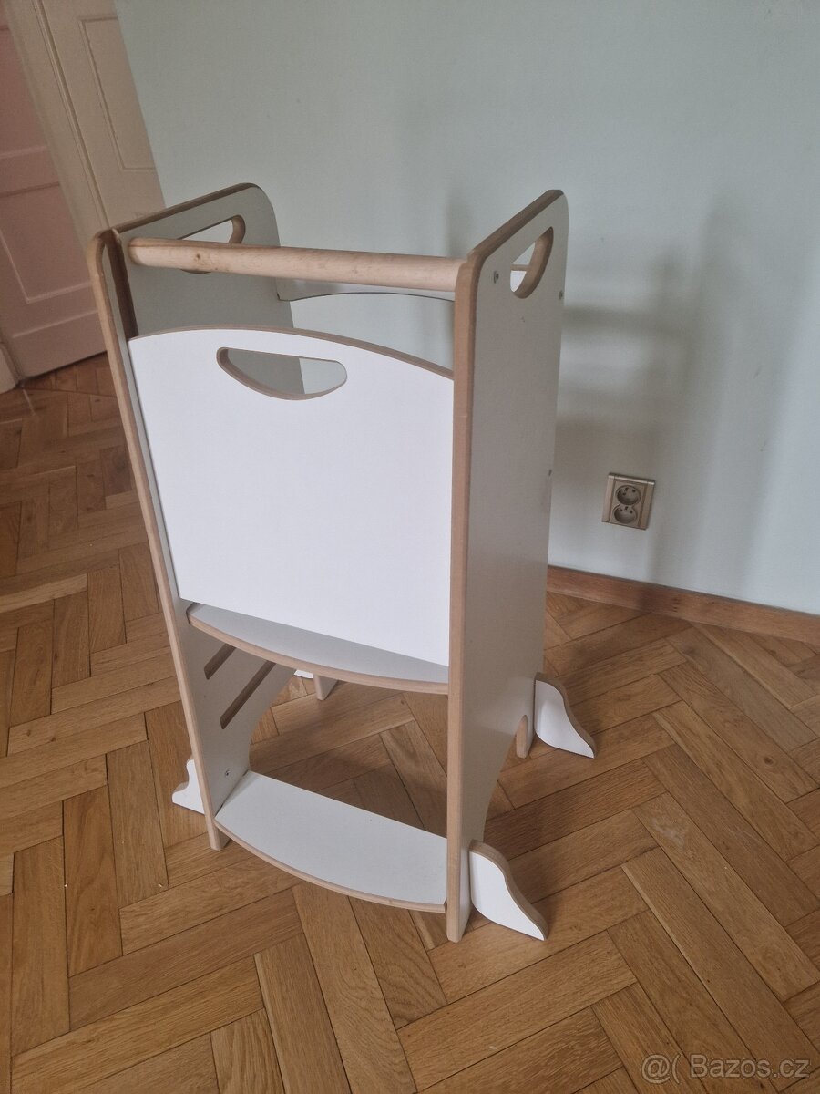 Dětská učící věž - masiv - TOP stav - [17.2. 2026]Prodám dětskou učící věž z masivu. Vynikající stav, dělaná na zakázku od truhláře, lakovaná. Skvělý pomocník do kuchyně nebo koupelny. Stabilní a bezpečné provedení. Rozměry: výška 93,5 cm, šířka 52 cm, hloubka 51 cm. Pouze osobní odběr. Platí do sma ...