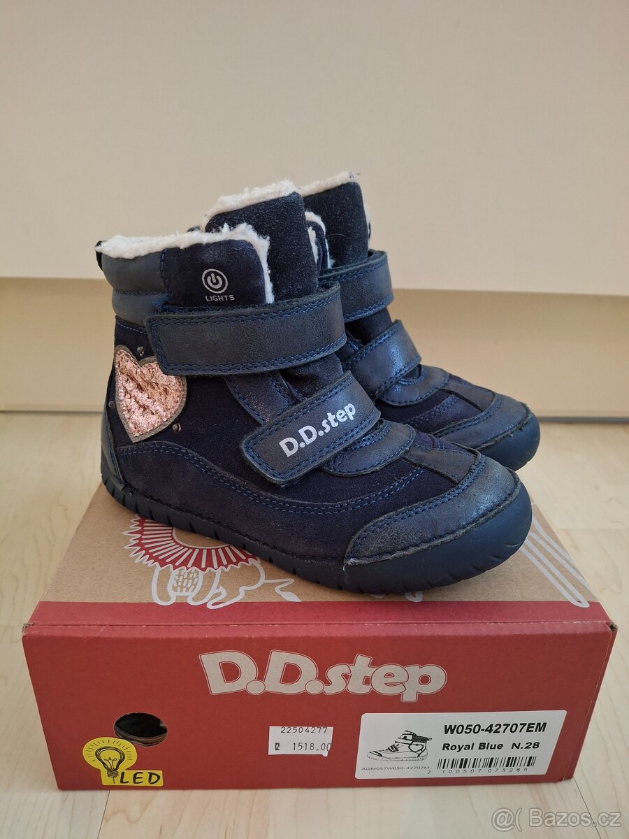 Prodám zimní barefoot svítící boty DD step. Velikost 28. Stélka cca 18cm.