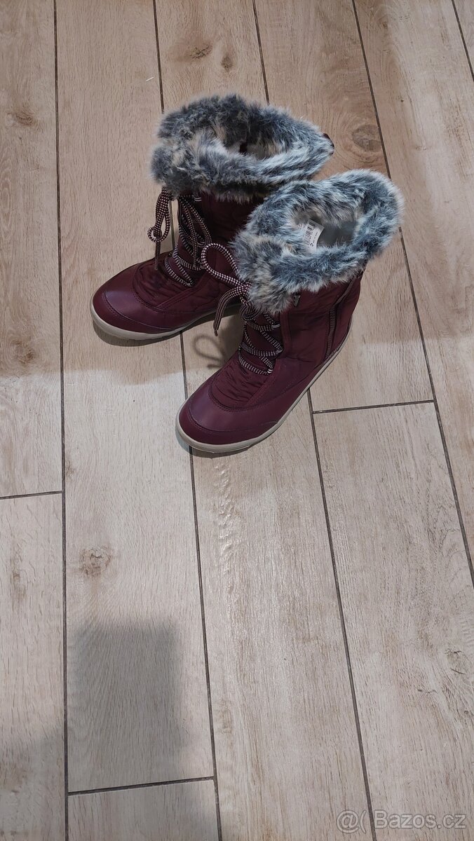 Prodám velmi oblíbené (kupovali jsme několik sezón za sebou) dívčí vínové sněhule z Decathlonu. Vel. 37 - odpovídá. V této barvě se už nedají sehnat. Velmi dobrý stav. Zapínání na zip a tkaničky.