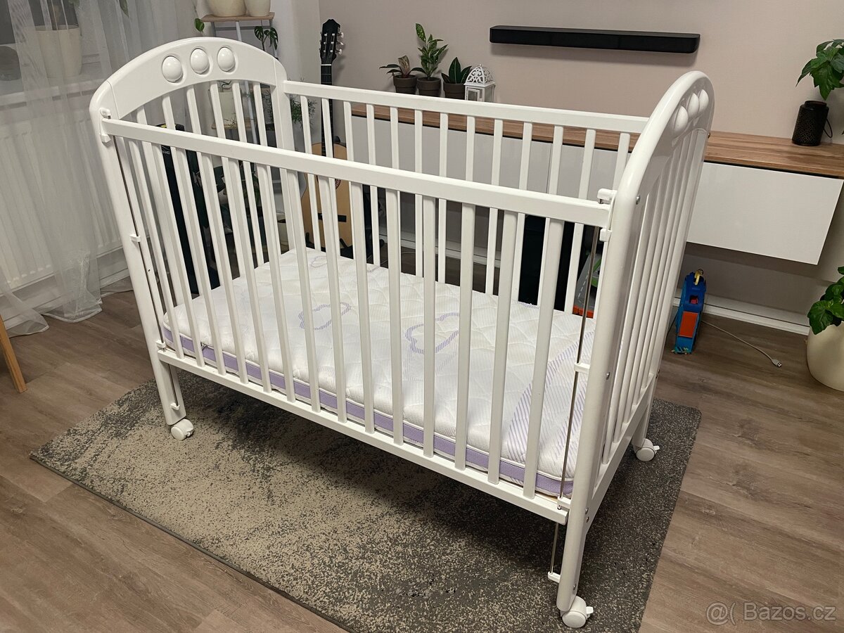 Prodám dřevěnou dětskou postýlku Scarlett Atlanta bílé barvy včetně matrace. Je v dobrém stavu, ale už ji nebudeme potřebovat, tak může posloužit jinde. Má na sobě pár oděrek, viz foto. Polohovací bočnice a rošt. Původní cena 10tis.