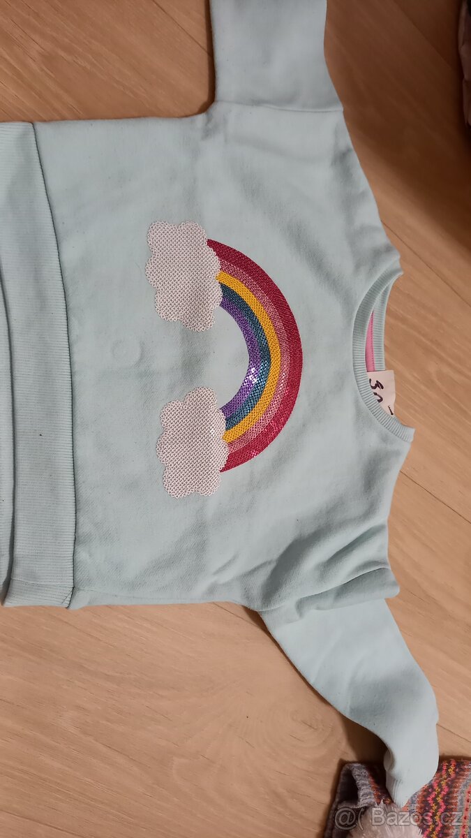 Prodám nošenou, ale pěknou, nezničenou dětskou mikinu s třpytivým obrázkem duhy. Značka F&F. Velikost 18- 24 měsíců. Osobní odběr či pošlu (poštovné hradí příjemce).