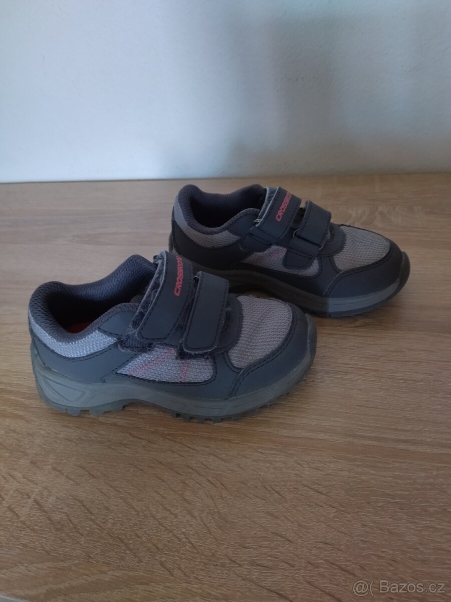 Prodám dětské trekové botky Crossroad, vel. 25, délka vnitřní stélky 16,7 cm. Na suchý zip, s hrubým vzorkem podrážky. Dle výrobce vhodné na výlety do přírody i na nošení ve městě. My jsme používali pouze ve městě (asi 3-4 měsíce). Jsou vyčištěné, ve velmi dobrém stavu.