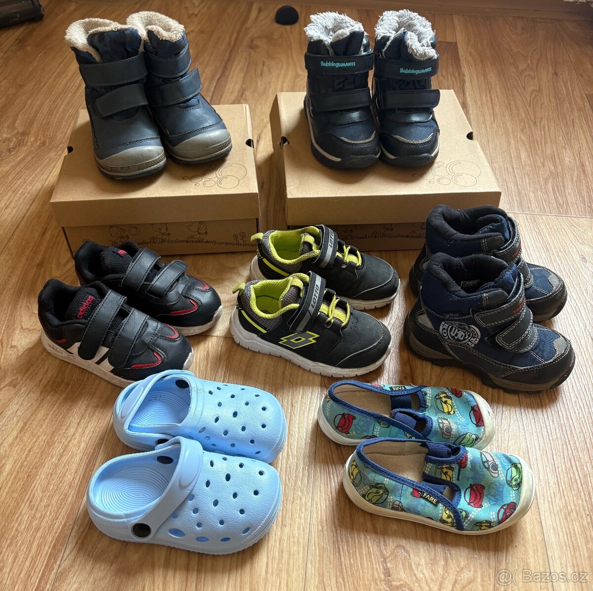 Prodám boty a oblečení na chlapečka vel 74-98 nějaké i větší. Boty velikost 22-24 jsou tam boty i jen párkrát použité a to jsou adidasky. Je to 5 tašek