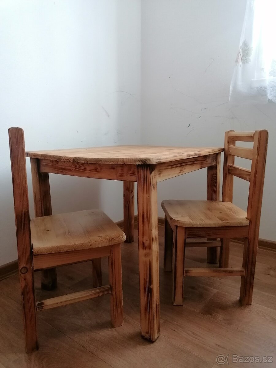 Dřevěný set - stůl a 2 židle pro děti.
