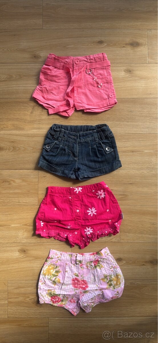 4 x krasne kratasy, bez vad, vel. 98. Ruzove zn. Girl2girl, regulace v pase. Dzinove zn. Next, regulace v pase. Syte ruzove zn. Large, v pase guma. Svetle ruzove kvetovane zn. George, v pase guma. Cena za vsechny