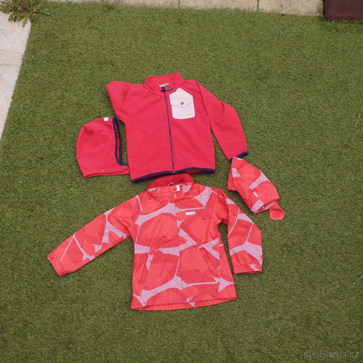1) červená, Didriksons, vel. 120. Pěkná bunda s minimálními známkami nošení. Nemá zevnitř fleece. Spíše na léto a teplejší jaro, podzim.