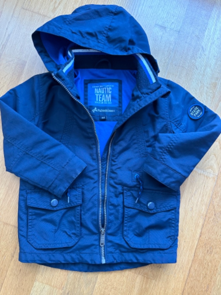 Dětská bunda Tchibo vel. 122/128 - [4.2. 2026]Dětská bunda Tchibo vel. 122/128, jarní/podzimní, šusťáková s náplaty, kapuce srolovatelná do límce, dobrý stav viz foto.