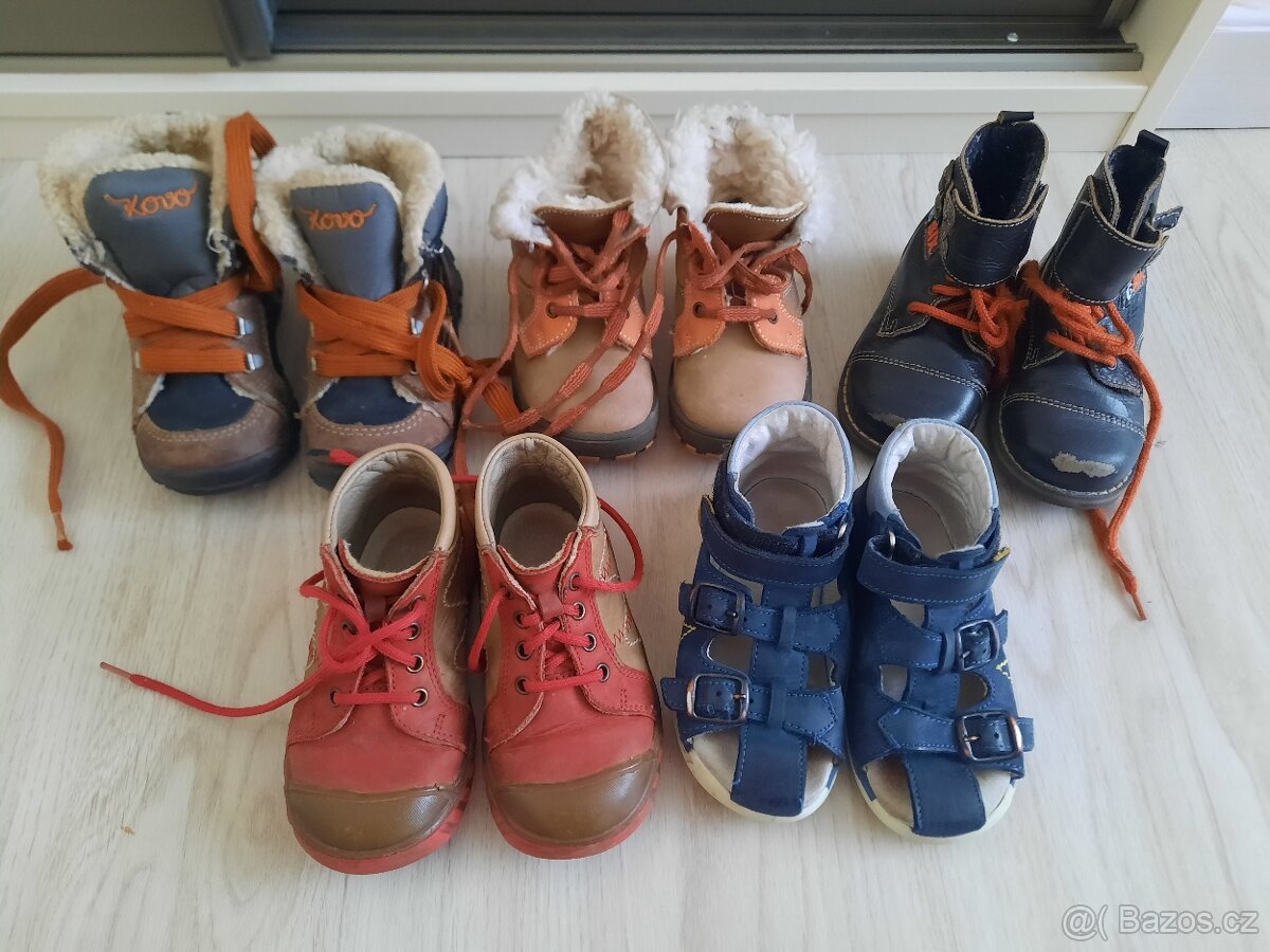 Prodám set dětských bot ve velmi dobrém stavu o velikosti 21, 22 a 23. různým značek. Můžete si vybrat i jednotlivě (cena z pár by pak byl 100 Kč)