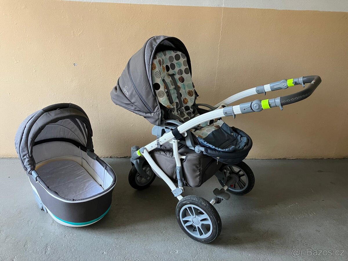 Sporťák: lze nasadit po i proti směru jízdy. Dětské madlo jde sundavat na každé straně zvlášť, nebo celkově sundat. Lze polohovat do několika poloh, i do naprostého lehu. Popruhy lze také polohovat a utahovat. Boudička lze hodně natáhnout proti sluníčku/ větru. Podnožka pro dítě lze polohovat - buď nožky natažené, nebo dolu.